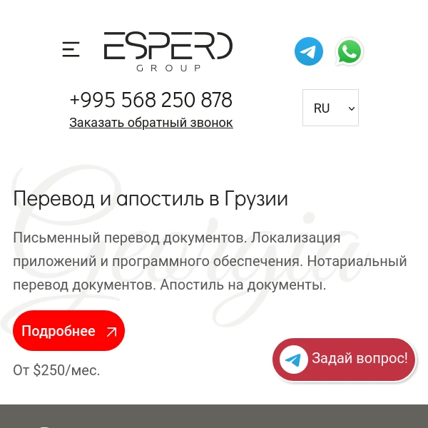 Хочу выразить свою благодарность компании Espero за профессиональную поддержку и помощь в получении виды на жительство в Грузии. Благодаря их команде я смог быстро получить необходимые документы. Сотрудники компании проявили высокий уровень компетенции, всегда были на связи и готовы помочь в любой ситуации. Они предоставили всю необходимую информацию, подготовили необходимые документы, и всегда были готовы ответить на все мои вопросы.